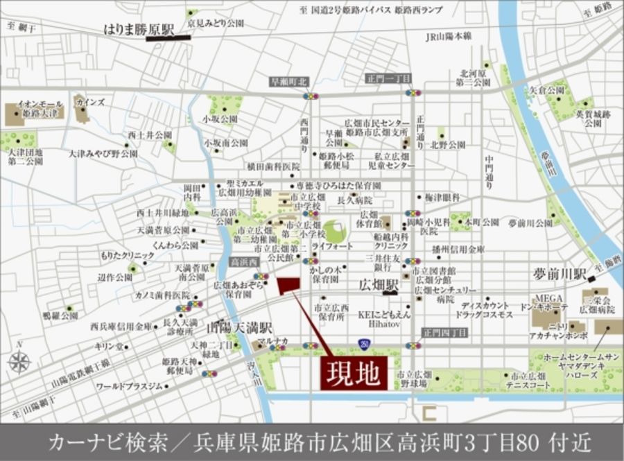 - ※周辺施設は、分譲地の所在地から半径3km以内の施設(大型施設は半径5km以内)のみを表示しています。