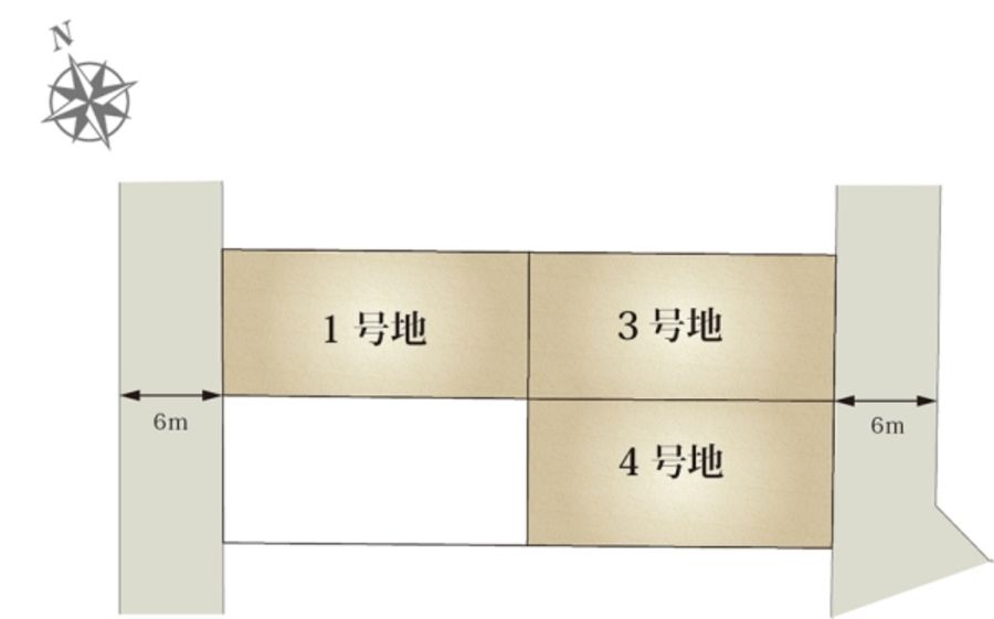 - 148.00m2(1号地)、148.00m2(3号地)、148.00m2(4号地) 全て私道負担なし