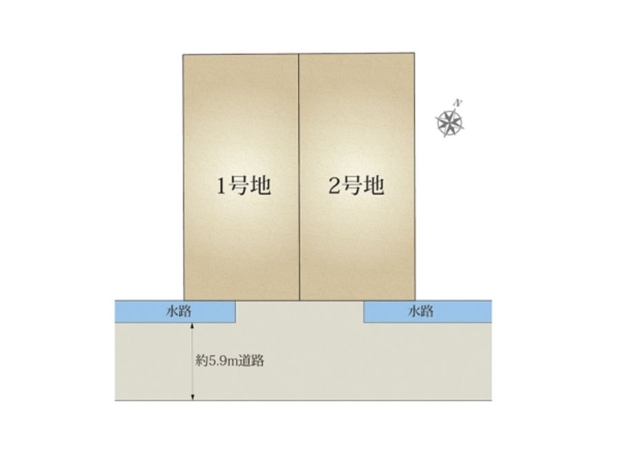 - 173.68m2(1号地)、174.04m2(2号地) 全て私道負担なし
