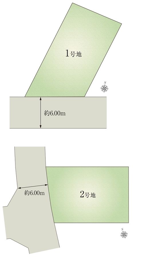 - 135.38m2(1号地)、170.42m2(2号地) 全て私道負担なし