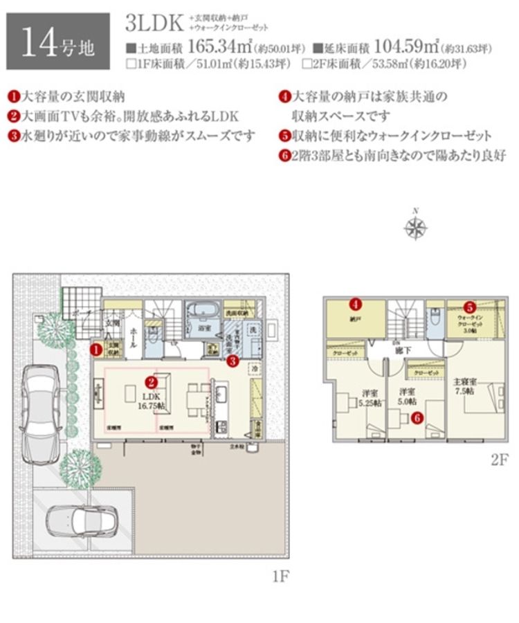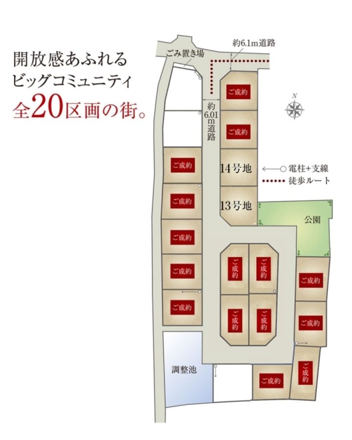 - 165.33m2(13号地)、165.34m2(14号地) 全て私道負担なし
