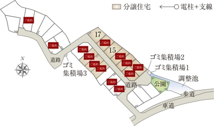 - 176.43m2(15号地)、180.68m2(17号地) 全て私道負担なし