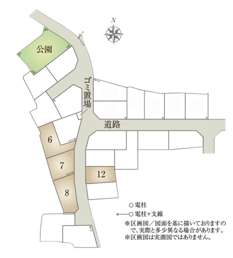 - 181.17m2(6号地)、169.73m2(7号地)、179.82m2(8号地)、135.82m2(12号地) 私道負担なし