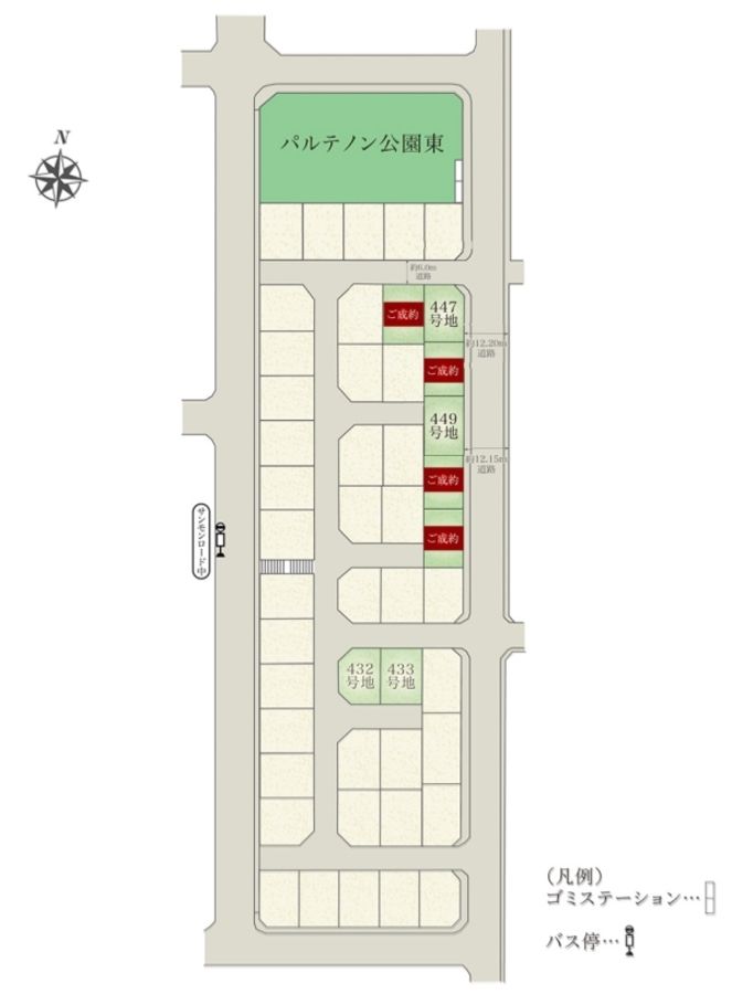- 142.78m2(432号地)、149.17m2(433号地)、144.58m2(447号地)、146.76m2(449号地) 私道負担なし