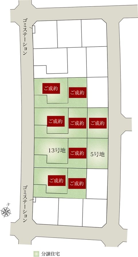 - 144.32m2(5号地)、169.44m2(13号地) 全て私道負担なし