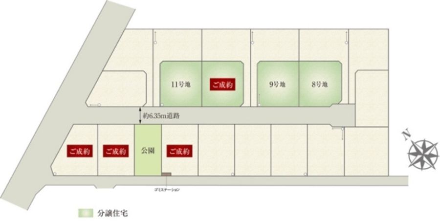 - 254.71m2(8号地)、255.51m2(9号地)、255.24m2(11号地) 私道負担なし