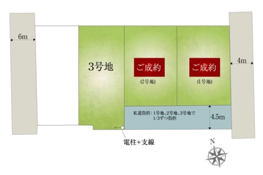 - 178.78m2 私道負担あり 105.98m2のうち、100分の45の負担持分(3号地)