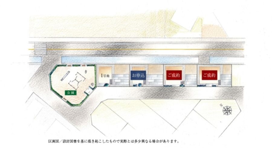 全34区画の大型分譲地。ゆとりの190m2超の敷地で、開放的な住まい