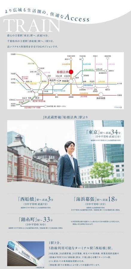 JR武蔵野線「船橋法典」駅利用で「東京」駅へ通勤時直通34分