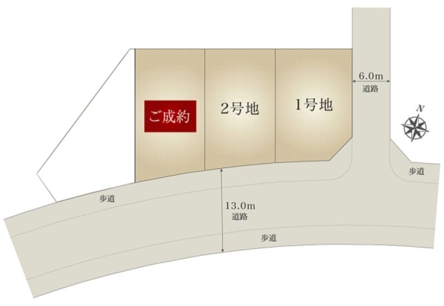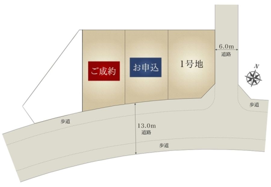 南側の前面道路が13.0mと広く駐車がしやすいほか、陽当たりの良い建物配置が可能。