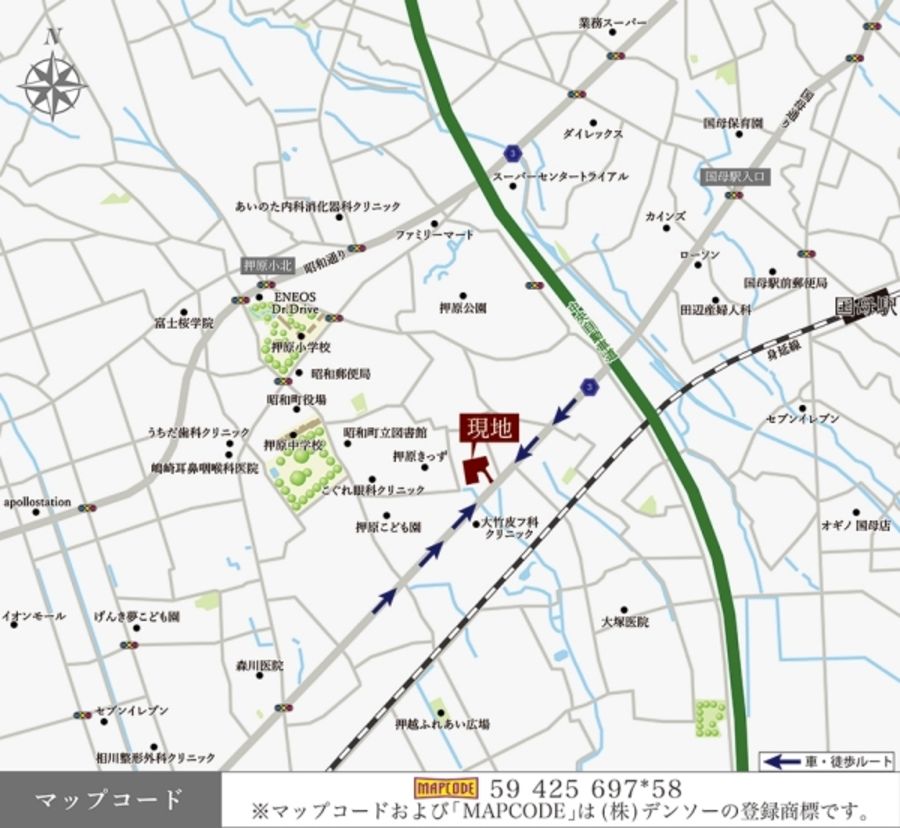 - ※周辺施設は、分譲地の所在地から半径3km以内の施設(大型施設は半径5km以内)のみを表示しています。