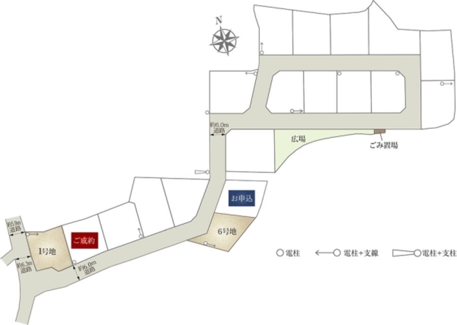 6号地間取り図に電柱の記載が漏れておりました。