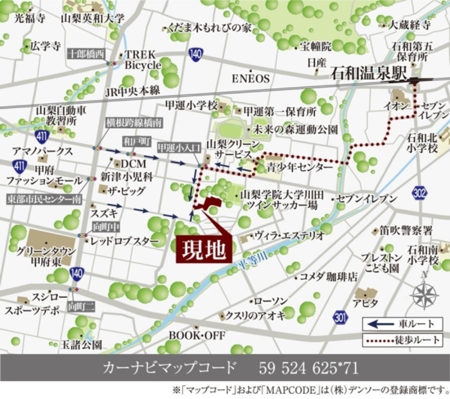 - JR中央本線「石和温泉」駅まで富士急バス約7分(徒歩6分の「甲運小学校入り口」バス停乗車)