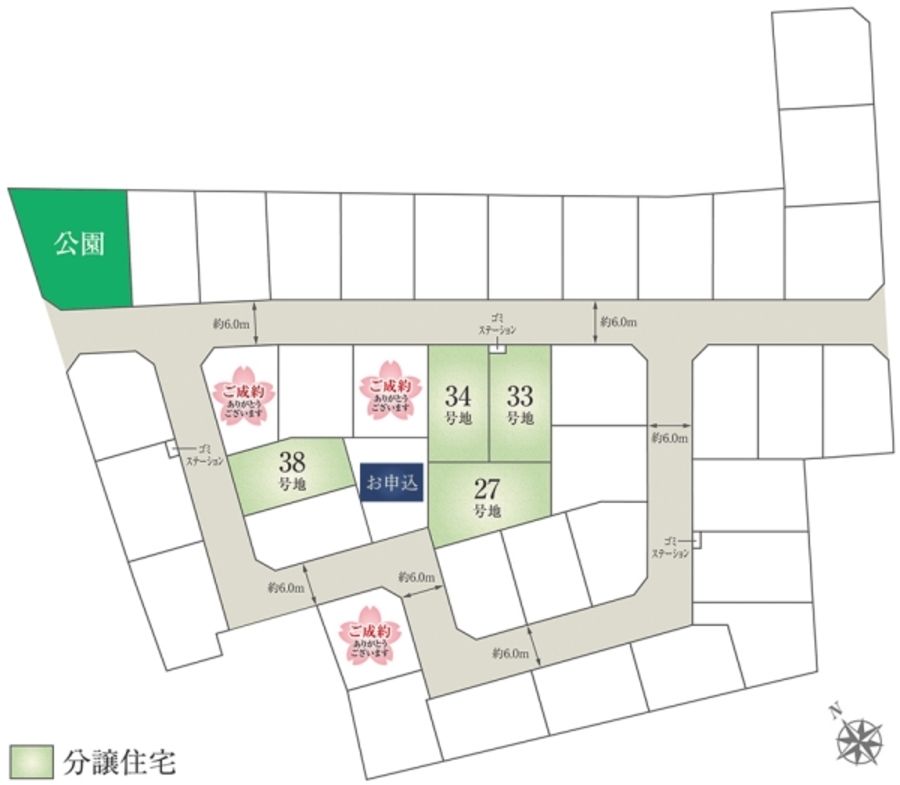- 156.30m2(27号地)、128.76m2(33号地)、128.74m2(34号地)、125.91m2(38号地) 私道負担なし