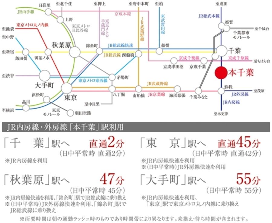 ・「秋葉原」駅へ47分※JR内房線快速を利用、「錦糸町」駅でJR総武線各停に乗換え