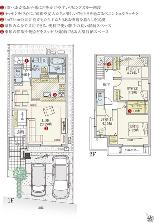 - 3LDK(3号地)、4LDK(1号地、2号地)