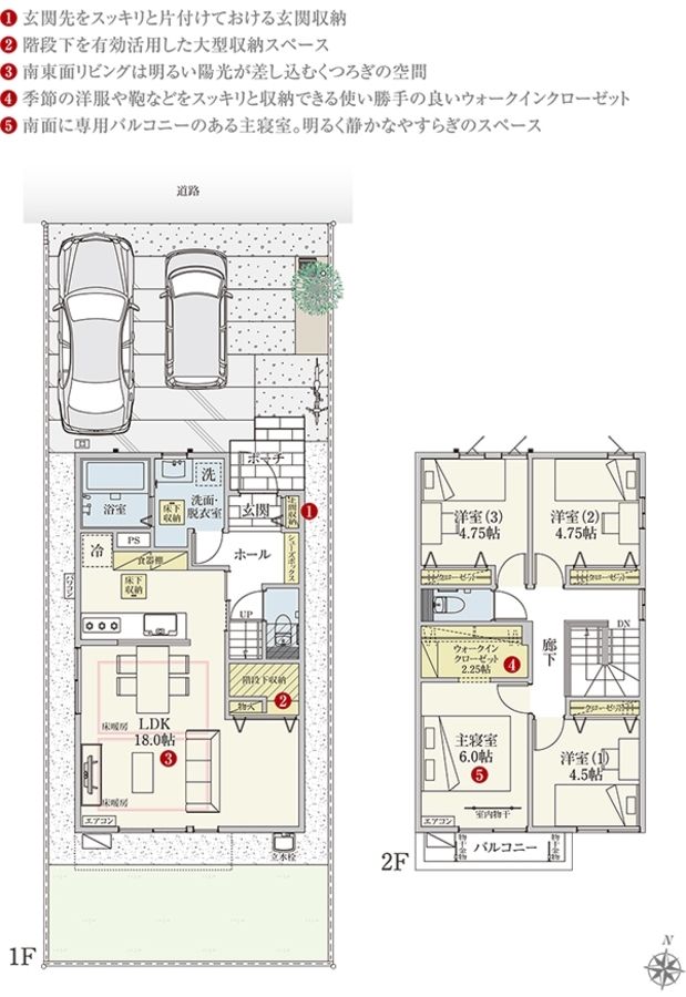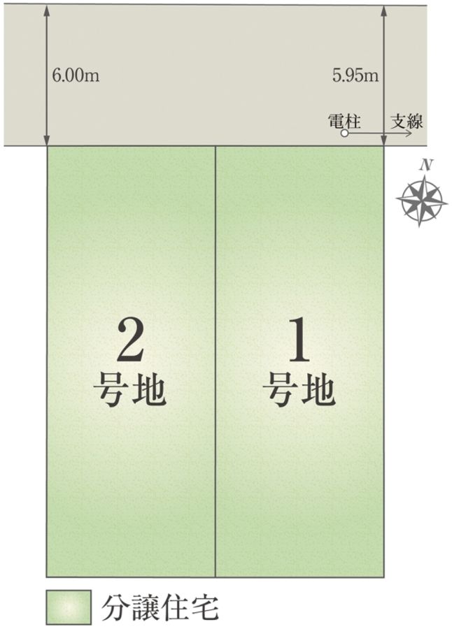 - 128.75m2(1号地)、128.75m2(2号地) 全て私道負担なし
