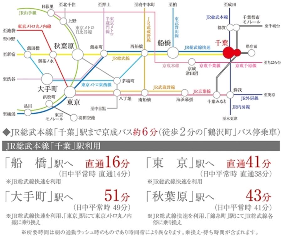 JR総武本線「千葉」駅まで京成バス約6分(徒歩2分の「鶴沢町」バス停乗車)