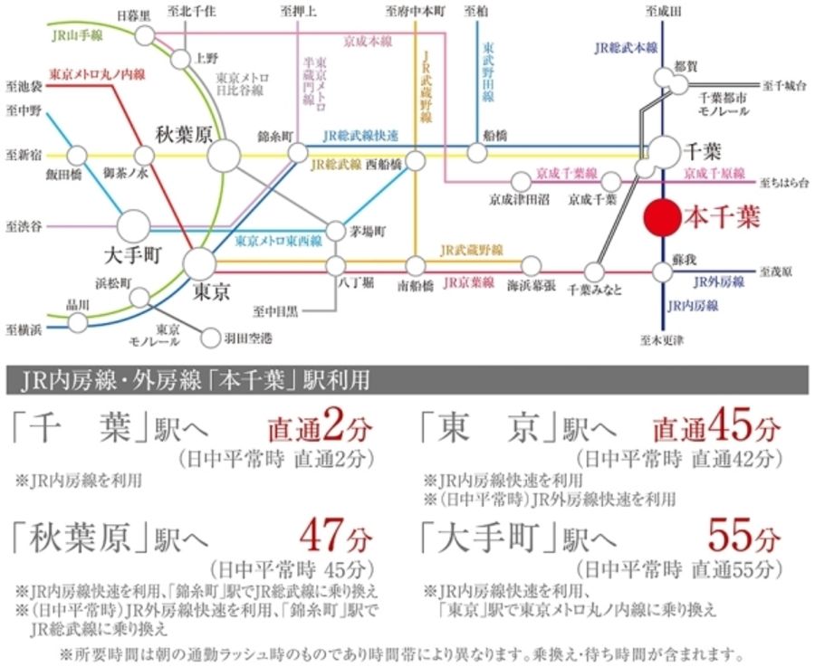 ・「秋葉原」駅へ47分※JR内房線快速を利用、「錦糸町」駅でJR総武線各停に乗換え