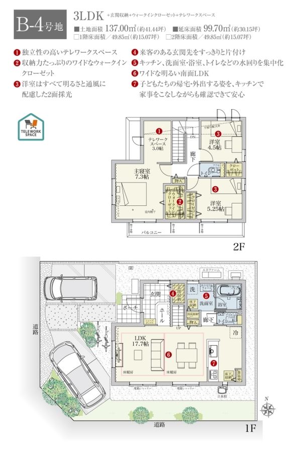 - 121.11m2(A-5号地)、137.00m2(B-4号地) 全て私道負担なし