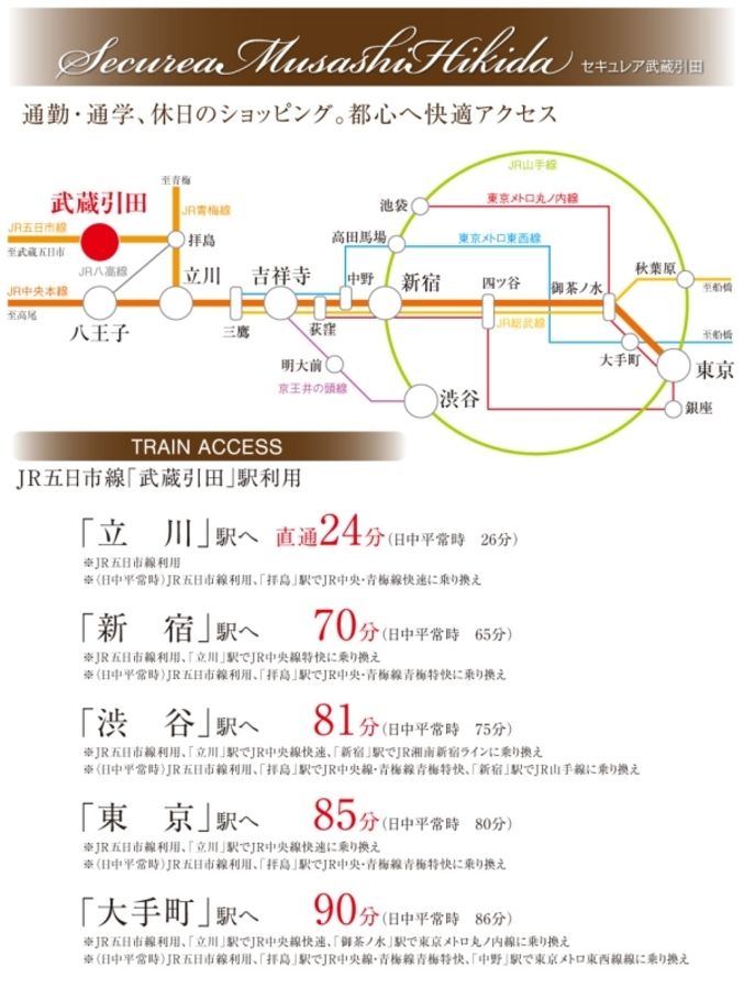 JR五日市線「武蔵引田」駅から「立川」駅へ直通24分。
