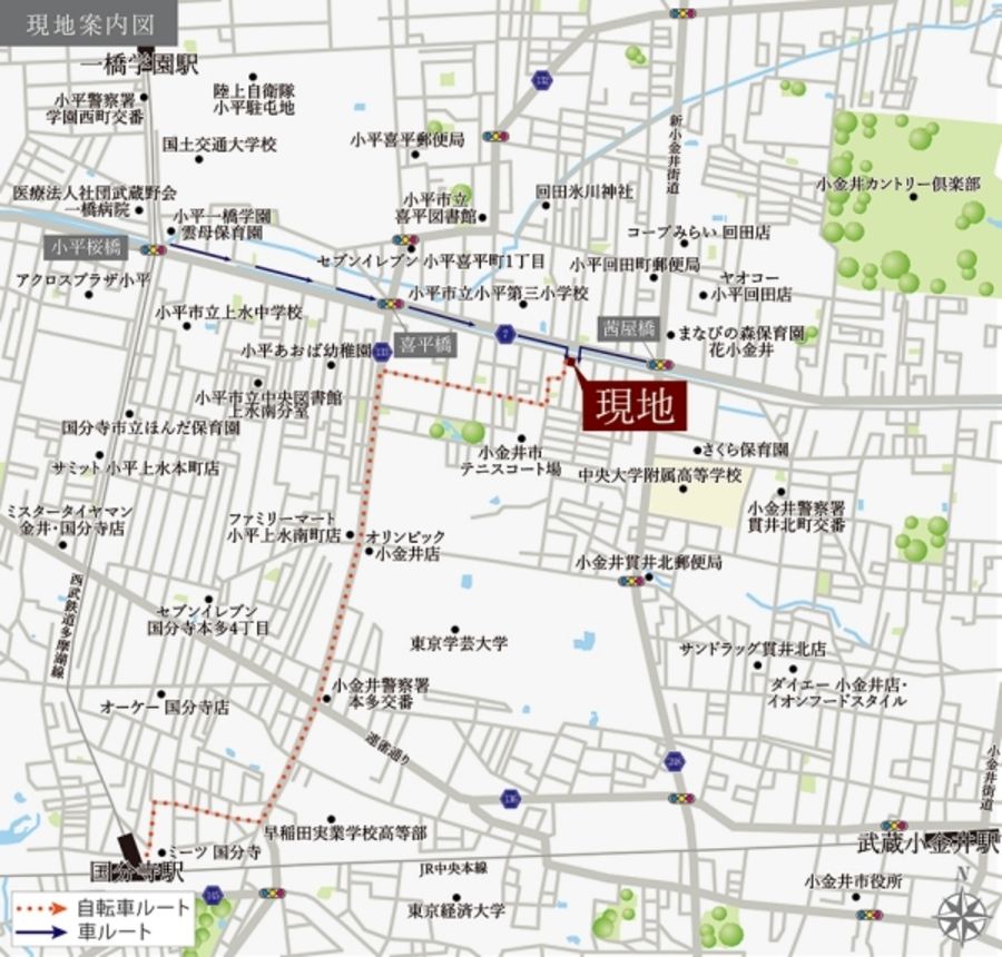 JR中央線「国分寺」駅「武蔵小金井」駅 バス利用可。自転車利用でJR中央線「国分寺」駅約9分