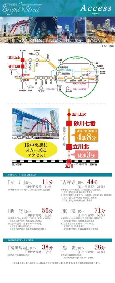 - 多摩モノレール「砂川七番」駅まで徒歩10分~11分