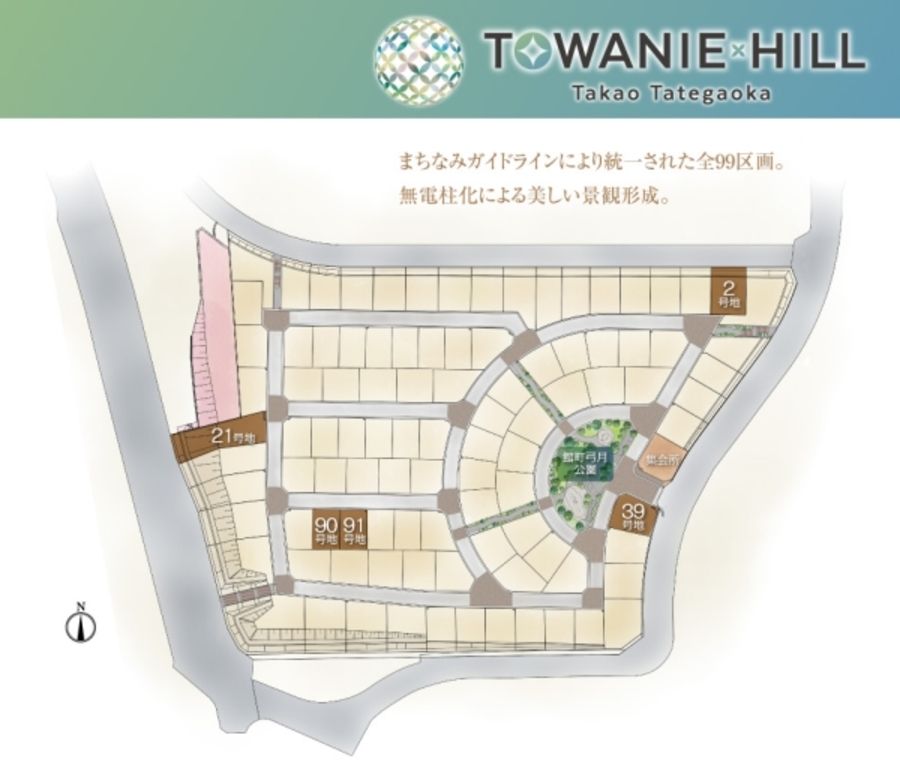 全99区画の大型分譲地で、無電柱化による美しく統一された街並み。