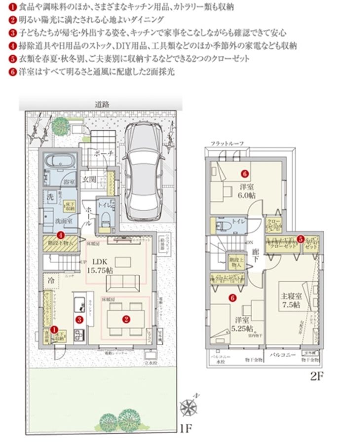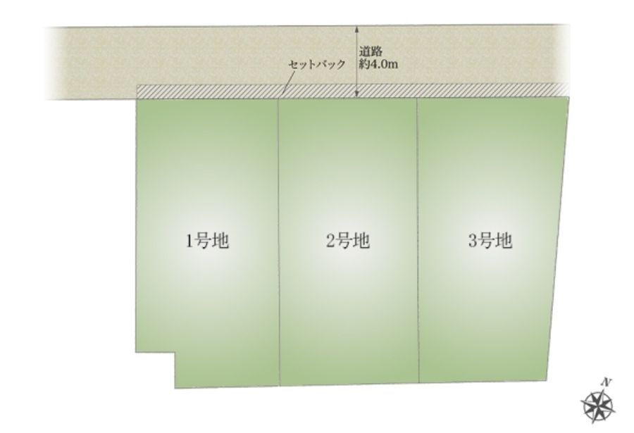 - 116.95m2(1号地)、116.98m2(2号地)、117.00m2(3号地) 私道負担なし
