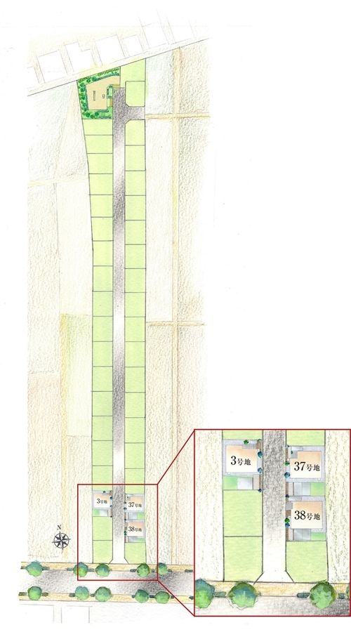 - 115.02m2(3号地)、115.01m2(37号地)、105.01m2(38号地) 私道負担なし
