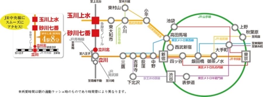 - 多摩モノレール「砂川七番」駅まで徒歩10分~12分