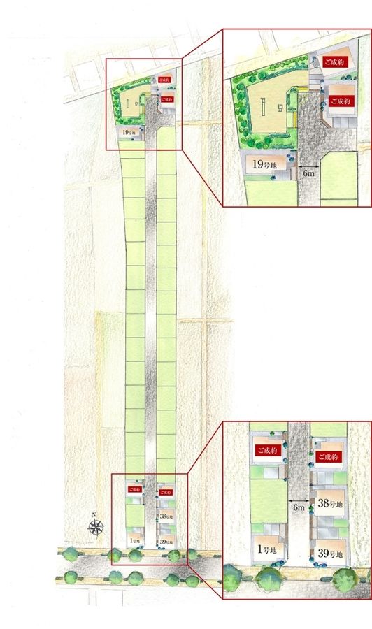 - 101.28m2(1号地)、115.01m2(19号地)、105.01m2(38号地)、101.30m2(39号地) 私道負担なし