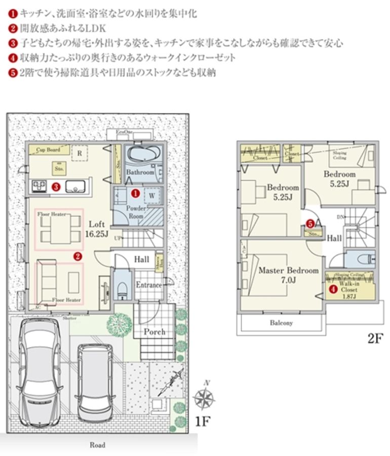 - 106.03m2(1号地)、106.04m2(2号地) 全て私道負担なし