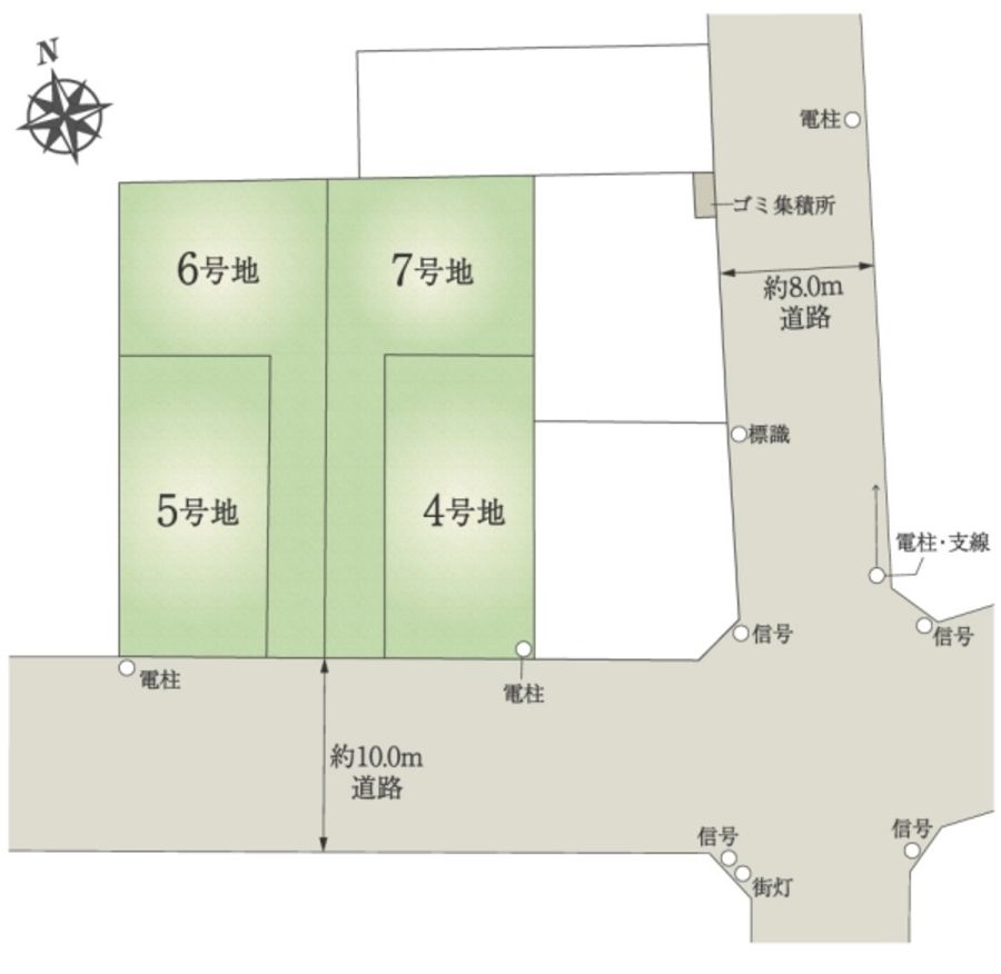 - 120.50m2(4号地)、120.50m2(5号地)、144.00m2(6号地)、144.50m2(7号地) 私道負担なし