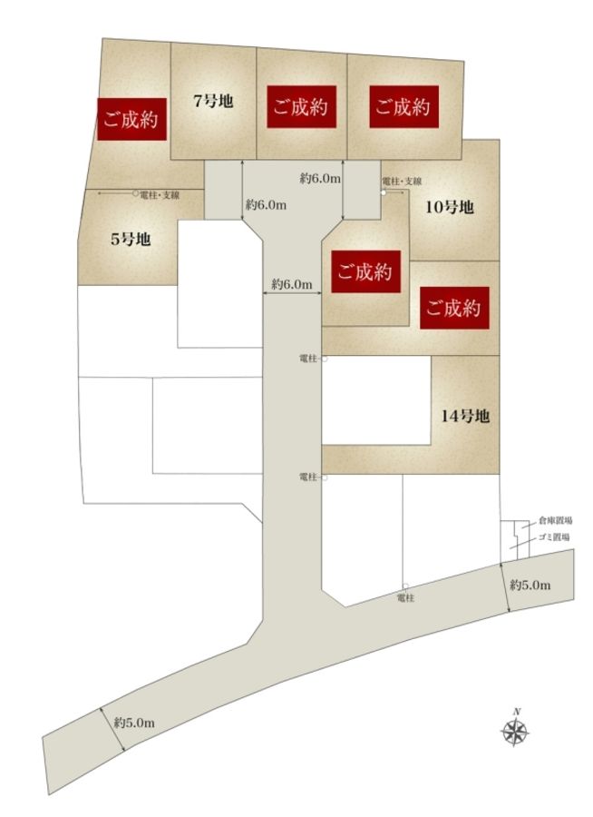 - 106.35m2(5号地)、103.31m2(7号地)、111.57m2(10号地)、118.28m2(14号地) 私道負担なし