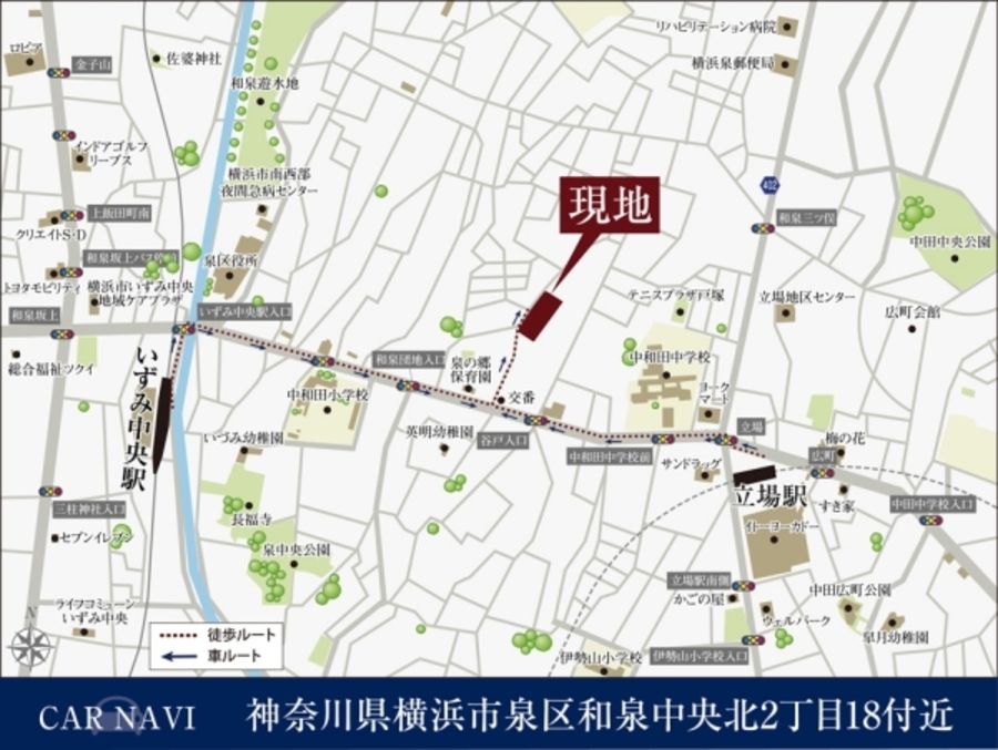 横浜市営地下鉄ブルーライン「立場」駅、相鉄いずみ野線「いずみ中央」駅まで徒歩圏内。