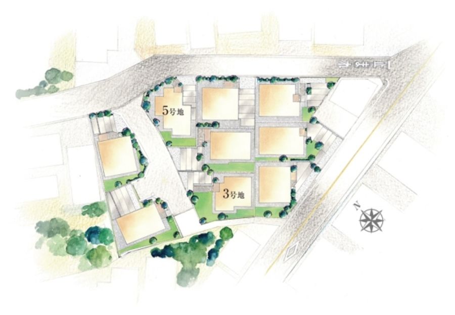 - 141.15m2 私道負担あり 144.64m2のうち6分の1の負担(3号地)、131.84m2 私道負担あり 144.64m2のうち6分の1の負担(5号地)