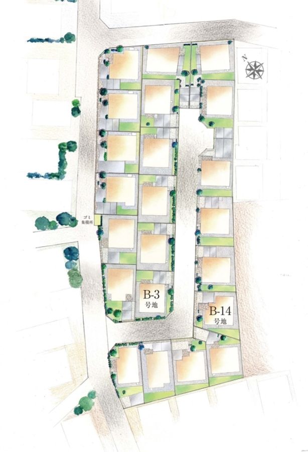 - 125.14m2 私道負担あり 461.39m2のうち17分の1(B-3号地)、125.14m2 私道負担あり 461.39m2のうち、17分の1(B-14号地)