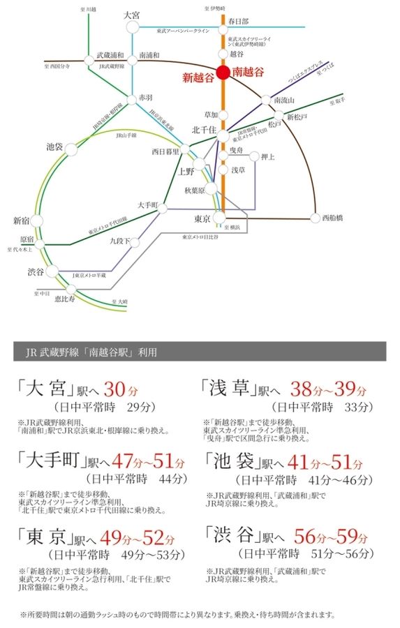 - JR武蔵野線「南越谷」駅まで徒歩11分