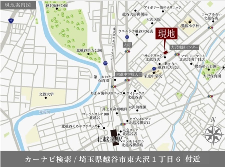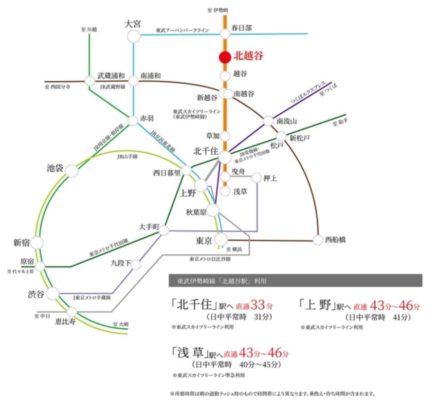 東武スカイツリーライン「北越谷」駅徒歩圏内。都心へのアクセスがスムーズで通勤・通学に便利な立地。