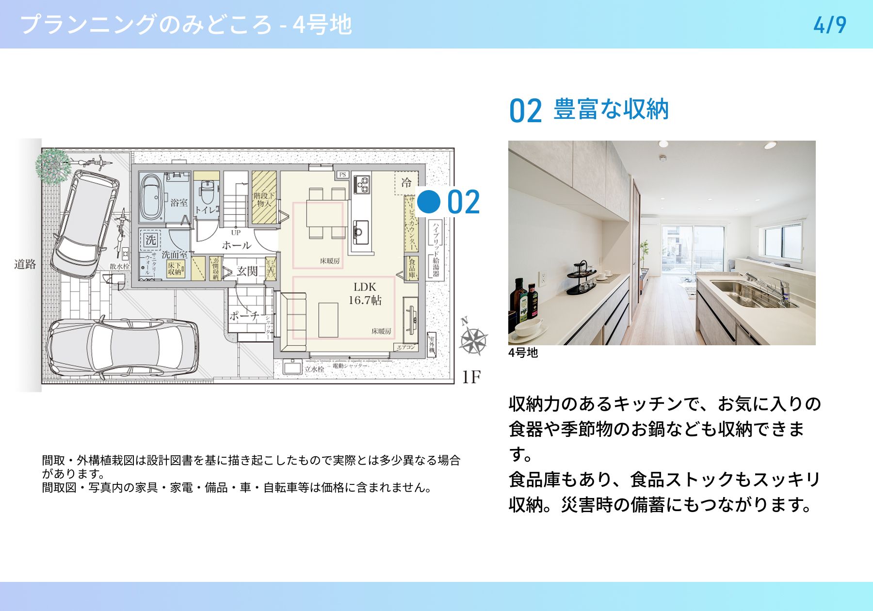 4号地 | 3LDK | 92.45㎡(約27.96坪) | 100.07㎡(約30.27坪) | 5,480万円 |