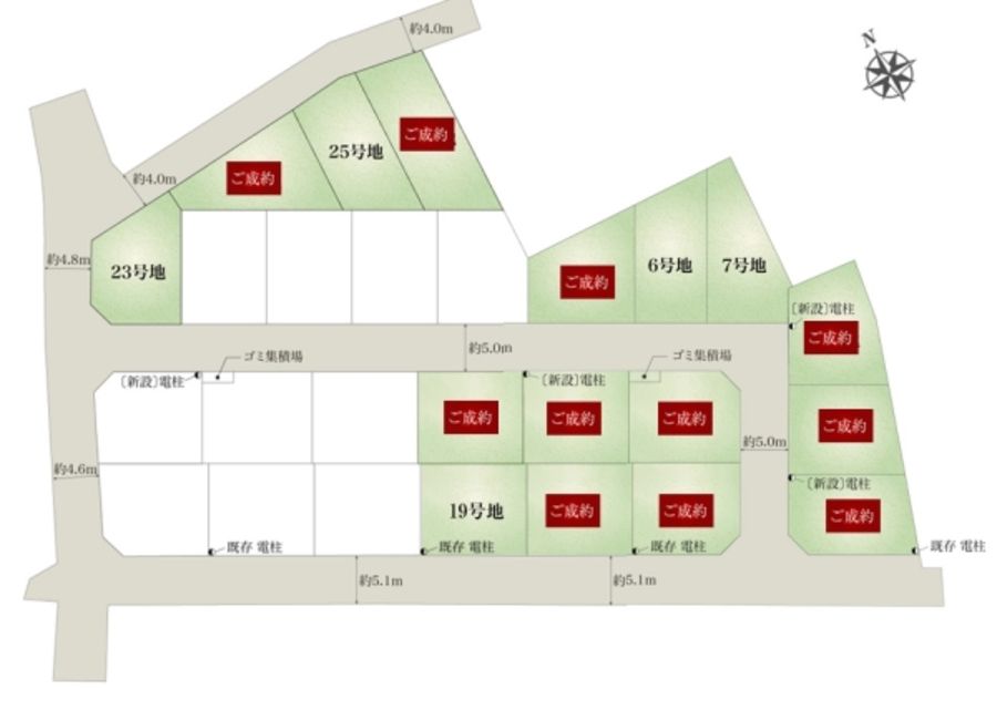 - 108.44m2(23号地)~111.13m2(7号地) 全て私道負担なし