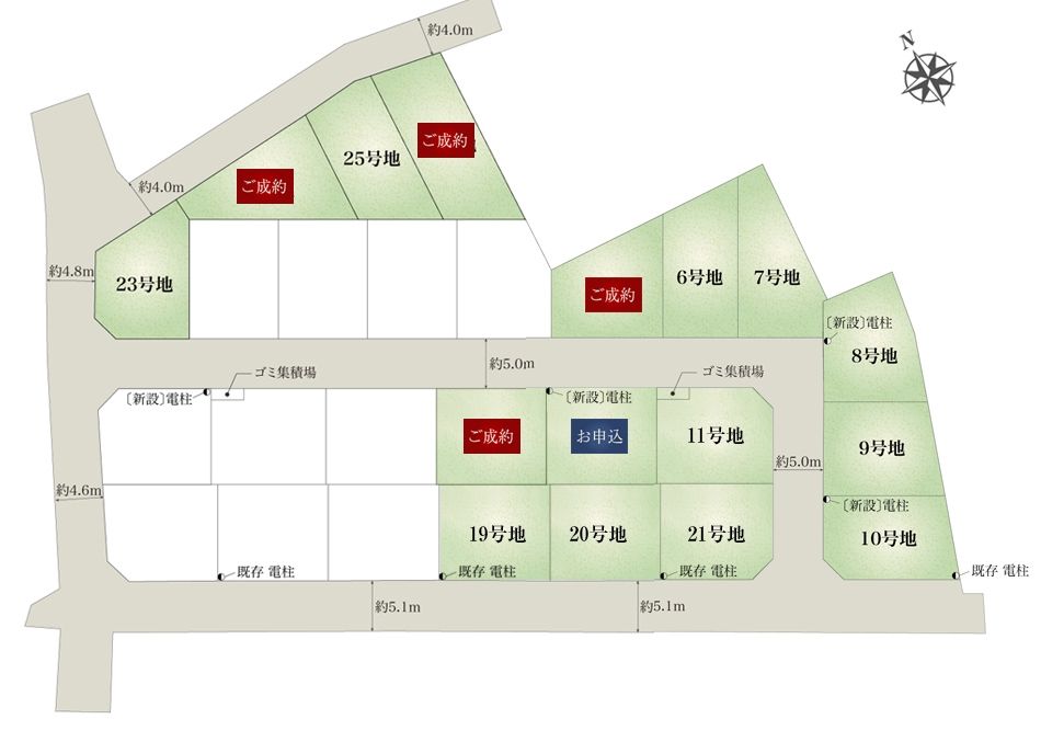 - 3LDK(7号地、8号地、9号地、10号地、11号地、19号地、21号地、23号地、25号地)、4LDK(6号地、20号地)