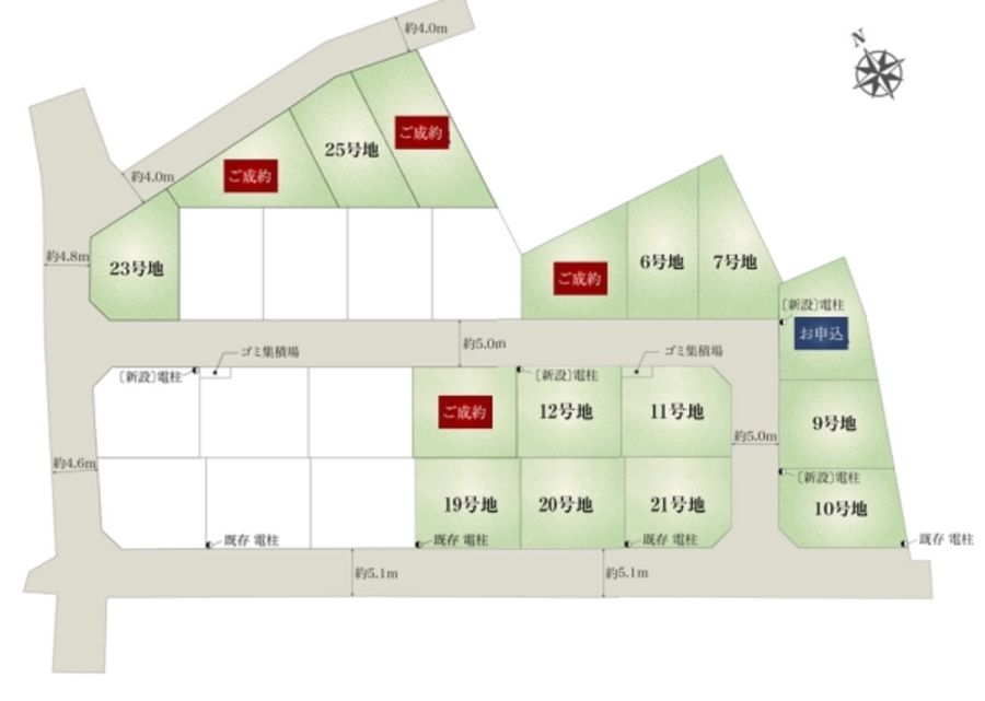 - 3LDK(7号地、9号地、10号地、11号地、12号地、19号地、21号地、23号地、25号地)、4LDK(6号地、20号地)