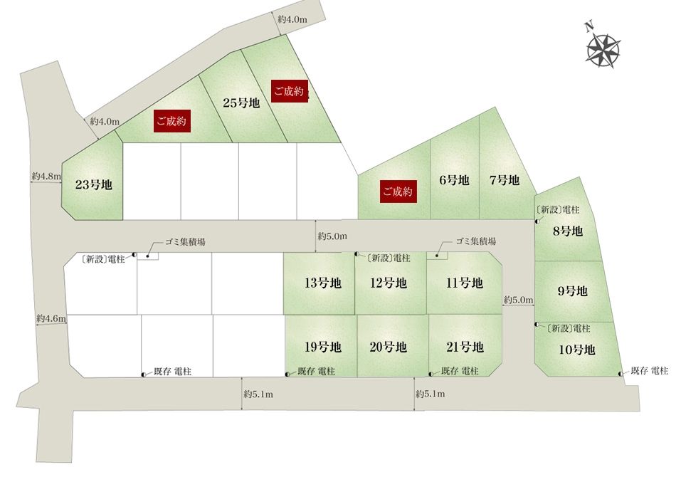 - 3LDK(7号地、8号地、9号地、10号地、11号地、12号地、13号地、19号地、21号地、23号地、25号地)、4LDK(6号地、20号地)