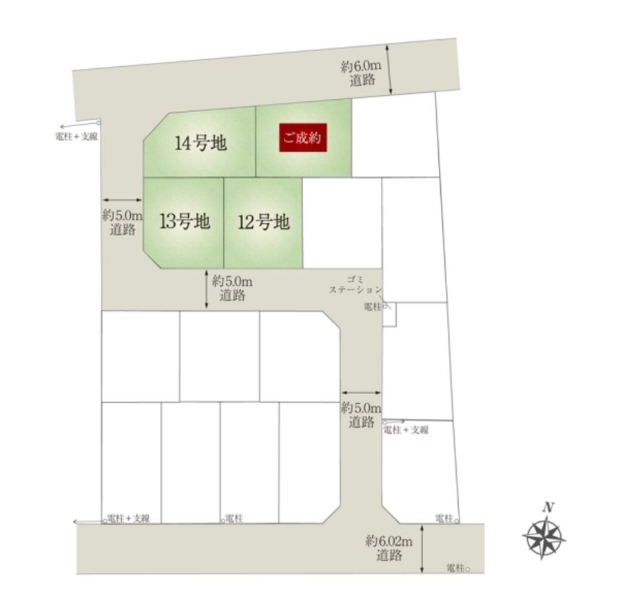 - 102.49m2(12号地)、102.51m2(13号地)、103.05m2(14号地) 私道負担なし