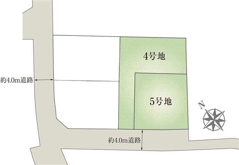 - 130.21m2(4号地)、120.14m2(5号地) 全て私道負担なし