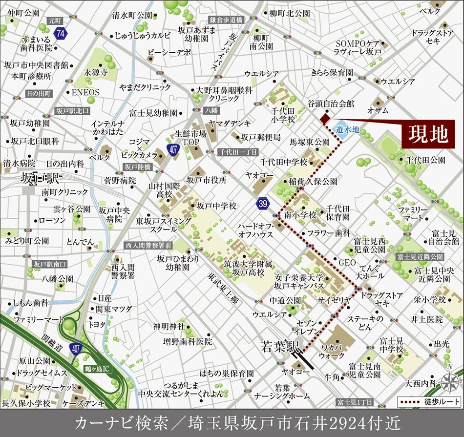 - 東武鉄道東上線「若葉」駅まで徒歩21分、自転車約7分(約1640m~約1660m)
