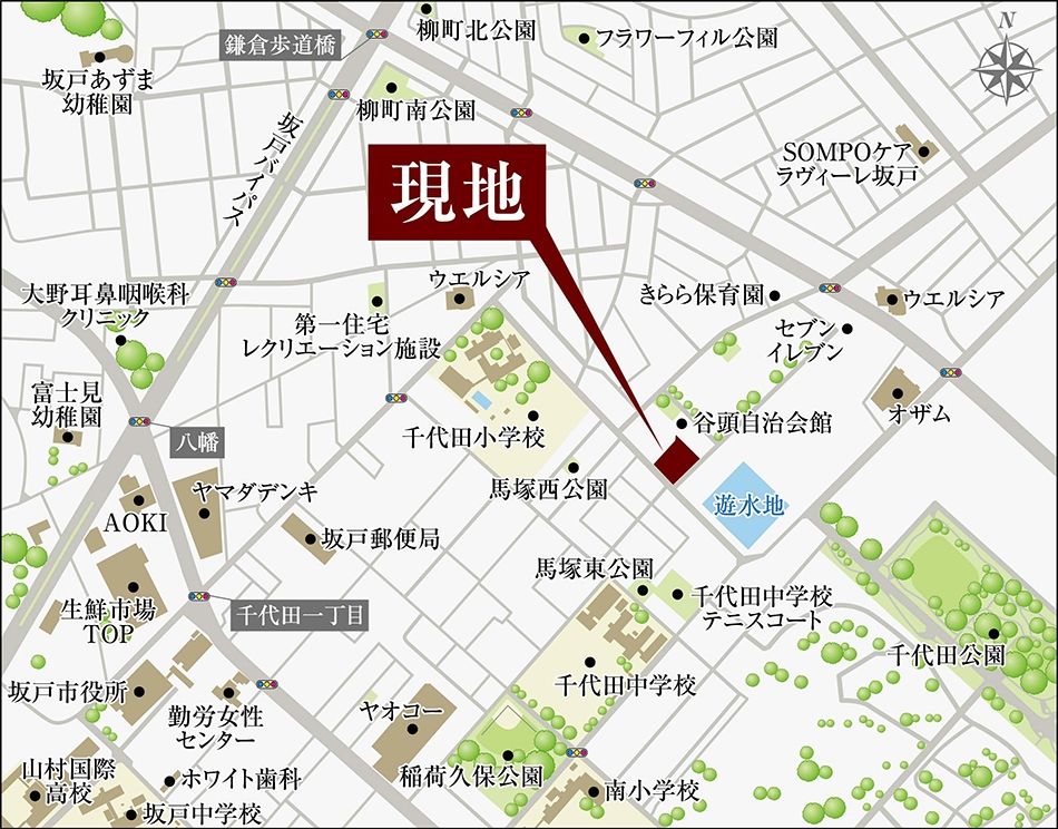 - ※地図上に表示される物件・施設の情報はおおよその所在地を表すものであり、実際の所在地とは異なる場合がございます。