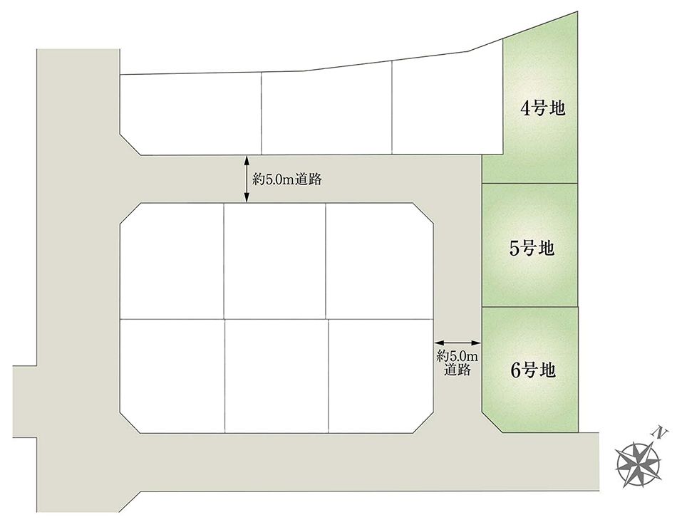 - 135.00m2(4号地)、127.00m2(5号地)、127.00m2(6号地) 私道負担なし